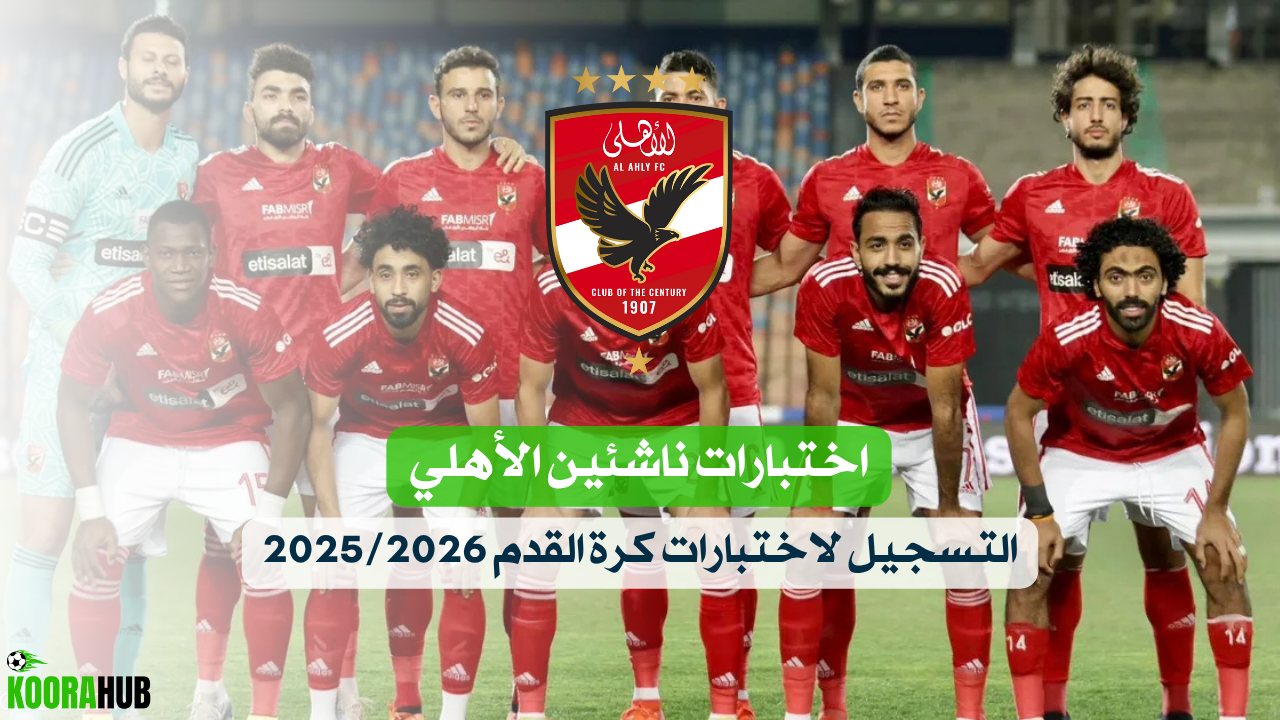 تبدأ اختبارات ناشئين الأهلي 2025-2026 في يونيو 2025 وتستمر حتى منتصف أغسطس.